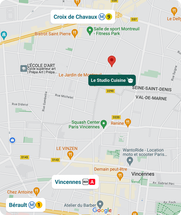 Le Studio Cuisine de Montreuil est situé aux portes de Paris, à seulement quelques minutes des stations :