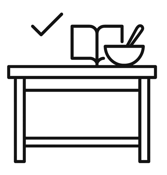 Plan de travail spacieux, idéal pour filmer des recettes, ateliers ou masterclass.